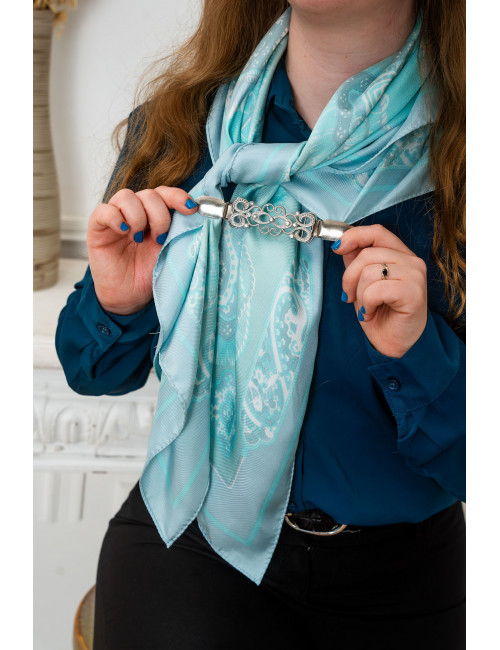 Carré de soie fabrication 100% Française. Carré en 100% soie, finition roulotté à la française, angles faits main dans la pure tradition artisanale française. Modèle sur fond bleu clair et bord bleu foncé. "Mettre les voiles" est l'expression qui illustre le mieux le dessin, elle est le reflet du départ imagé, un nouveau voyage tout simplement. Elégant et raffiné sur les épaules ou autour du cou. Créé, imprimé et confectionné en France. Cela en fait un produit de qualité française. Seule de petites quantités sont fabriquées, ce qui garantie que vous portez un accessoire de mode unique. |