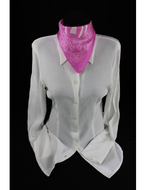 AMOUR DE SOIE, un ruban à nouer en soie fabrication 100% Française. Cet accessoire en pure soie, imprimé et confectionné en France, apportera un accent chic, élégant à toutes les tenues. Les motifs différents au recto et au verso permettent d'avoir un accessoire réversible. Vous recevrez un produit de la collection prise en photo mais il sera unique. Aucun ne se ressemble car lors de la confection, il est coupé de manière différente. A porter autour du cou, à nouer au poignet, dans les cheveux ou pour accessoiriser élégamment son sac. Vous pouvez ainsi varier selon votre humeur, votre caractère, votre style. Dimensions environ 85 cm de longueur par 4 à 5 cm de largeur. |