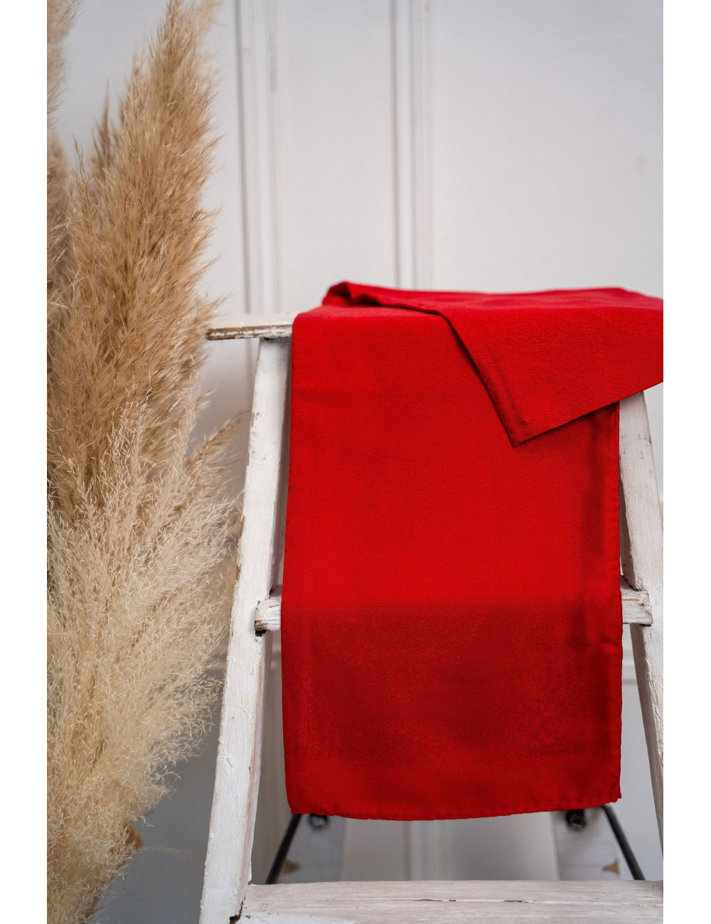Etole Petit Cachemire Rouge de dimensions 70 cm par 180 cm en 100% soie. Dessinée, tissée et confectionnée en France.